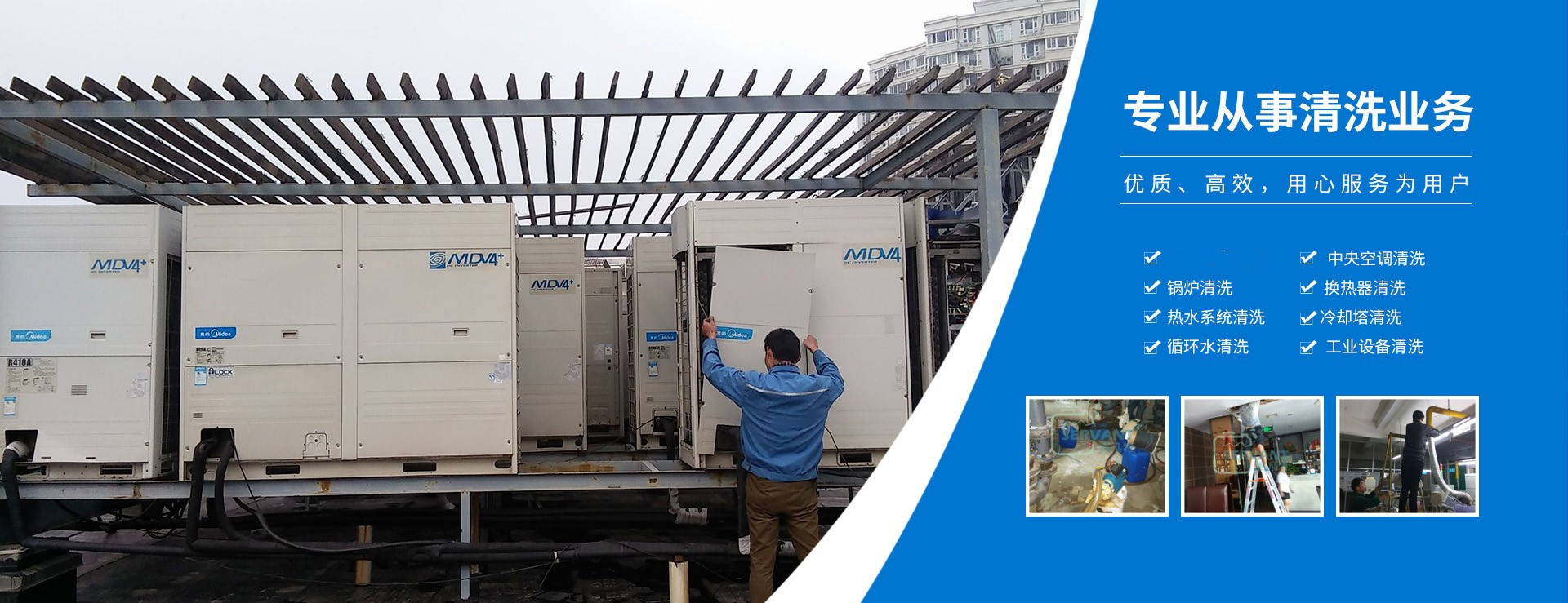 我公司清洗范圍包括:家用制冷設(shè)備清洗,中央空調(diào)清洗,鍋爐清洗,換熱器清洗,熱水系統(tǒng)清洗,冷卻塔清洗,循環(huán)水清洗,工業(yè)設(shè)備清洗,通風(fēng)管道清洗,排風(fēng)煙囪清洗,電熱水器清洗,設(shè)備除油,設(shè)備除銹,清洗劑銷售。